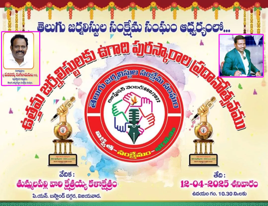 విశ్వంభర, విజయవాడ : జర్నలిస్టుల సంక్షేమానికి పెద్దపీట వేస్తూ జర్నలిస్టుల సంక్షేమ సంఘం ( ఆంధ్ర ప్రదేశ్) ప్రతి సంవత్సరం ప్రఖ్యాతిగాంచిన వారందరికీ ఉగాది పురస్కారాలను అందజేస్తుంది. ఈ సందర్భంగా జర్నలిజంలో అత్యంత అత్యుత్తమ ప్రతిభ కనబరిచిన జర్నలిస్టులకు ఈ అవార్డులను ప్రధానం చేస్తుంది. 2024 - 25 సంవత్సరానికి గాను అవార్డుల జాబితాలో సంఘం వ్యవస్థాపక అధ్యక్షులు మేడవరపు రంగనాయకులు తాజాగా ప్రకటించారు.