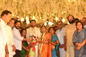 విశ్వంభర,సంగారెడ్డి : టీపీసీసీ వర్కింగ్ ప్రెసిడెంట్ తూర్పు జగ్గారెడ్డి, టీజీఐఐసీ చైర్పర్సన్ నిర్మల దంపతుల కుమార్తె జయారెడ్డి వివాహం గుణచైతన్యరెడ్డితో ఘనంగా జరిగింది. సంగారెడ్డిలోని రాంమందిర్ వేదికగా గురువారం రాత్రి జరిగిన వేడుకకు డిప్యూటీ సీఎం భట్టి విక్రమార్క, స్పీకర్ గడ్డం ప్రసాద్, సీఎం రేవంత్రెడ్డి సతీమణి గీత, కుమార్తె నైమిషారెడ్డి, మంత్రులు తుమ్మల నాగేశ్వరరావు,... కేసీఆర్ ఫ్యామిలీ..అలీబాబా 40 దొంగల ముఠా..