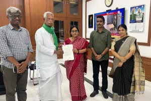 విశ్వంభర, హైదరాబాద్ ; గ్రేటర్ హైదరాబాద్ చేనేత ఐక్య వేదిక ఆర్గనైజింగ్ సెక్రటరీ గా సిరిమల్ల పద్మ నియామకమయ్యారు. ఈ నియామక పత్రాన్ని తుర్కయంజాల్ లోని చేనేత ఐక్య వేదిక రాష్ట్ర కార్యాలయం లో రాష్ట్ర అధ్యక్షులు రాపోలు వీర మోహన్ చేతుల మీదుగా అందుకున్నారు. ఈ సందర్బంగా రాపోలు వీరమోహన్ మాట్లాడుతూ మహిళలు అన్ని... డా. వేదాల శ్రీనివాస్ కు విఎంపి భారత గౌరవ పురస్కారం