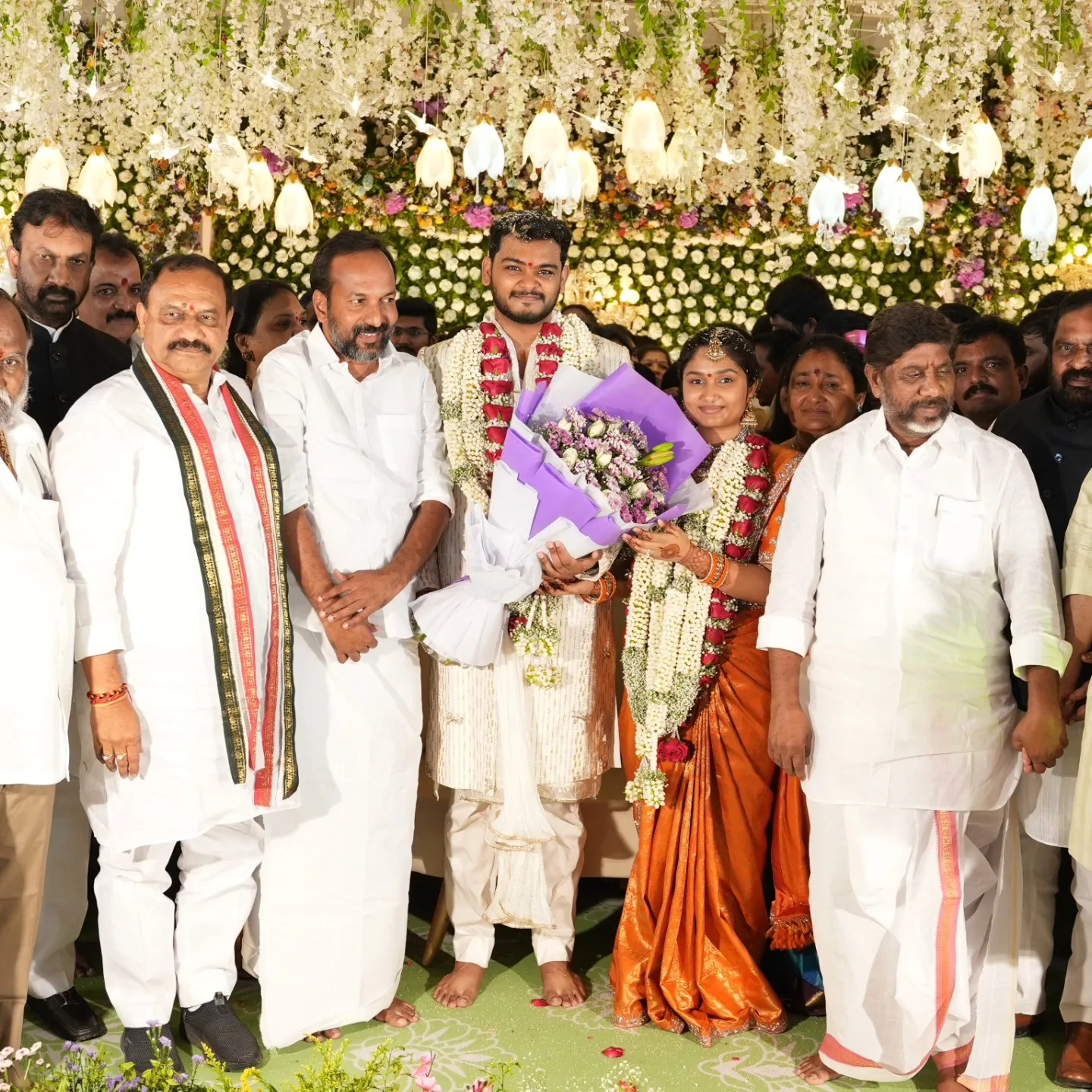 విశ్వంభర,సంగారెడ్డి : టీపీసీసీ వర్కింగ్ ప్రెసిడెంట్ జగ్గారెడ్డి కుమార్తె జయారెడ్డి, గుణచైతన్యరెడ్డిల వివాహ నిశ్చితార్థ వేడుక బుధవారం సంగారెడ్డిలో జరిగింది. ఈ కార్యక్రమానికి ముఖ్యమంత్రి రేవంత్రెడ్డి హాజరయ్యారు. జపాన్ పర్యటన ముగించుకొని బుధవారం రాత్రి హైదరాబాద్ వచ్చిన ఆయన, నేరుగా సంగారెడ్డిలోని రామ్నగర్ బస్తీకి వచ్చారు. రామ్మందిర్లో పూజలు చేసిన అనంతరం కాబోయే వధూవరులను ఆశీర్వదించారు. నిశ్చితార్థ వేడుకకు స్పీకర్ గడ్డం ప్రసాద్, డిప్యూటీ సీఎం భట్టి, మంత్రులు ఉత్తమ్కుమార్రెడ్డి, కోమటిరెడ్డి వెంకట్రెడ్డి, కొండా సురేఖ, దామోదర రాజనర్సింహ, టీపీసీసీ చీఫ్ మహేశ్కుమార్గౌడ్, ప్రభుత్వ సలహాదారు వేం నరేందర్రెడ్డి, ఎంపీ సురేశ్శెట్కార్, రాహుల్ గాంధీ వ్యక్తిగత కార్యదర్శి జేజు, ఏఐసీసీ కార్యదర్శి విశ్వనాథ్, కాంగ్రెస్ సీనియర్ నేతలు వీహెచ్, కుసుమకుమార్, సంపత్కుమార్, వంశీచంద్రెడ్డి, బీజేపీ ఎమ్మెల్సీ అంజిరెడ్డి, కాంగ్రెస్ ఎమ్మెల్యేలు హాజరయ్యారు. తమ కూతురు నిశ్చితార్థ వేడుకకు వచ్చిన అతిథులకు జగ్గారెడ్డి, ఆయన సతీమణి, టీజీఐఐసీ చైర్పర్సన్ నిర్మల స్వయంగా స్వాగతం పలికారు.