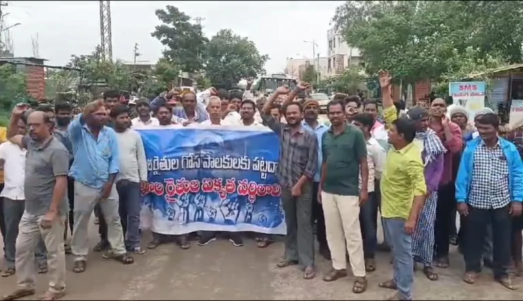 నాగర్ కర్నూల్ జిల్లా కల్వకుర్తి మిల్క్ సెంటర్ ఎదురుగా ప్రధాన రహదారిపై చాలా గ్రామాల పాడి రైతులు పాలక్యాన్లతో నిరసన రాస్తారోకో చేస్తూ ధర్నాకు దిగారు, రెండు నెలలుగా నాలుగు బిల్లులు రావడంలేదని ఎన్నిసార్లు అడిగినా కాలయాపన తప్ప పరిష్కార మార్గం దొరకక రోడ్ ఎక్కామని రైతులు ఆవేదన వ్యక్తం చేశారు, ఇప్పటికైనా ప్రభుత్వం వెంటనే స్పందించి బిల్లులు సకాలంలో ఇవ్వాలని లేని పక్షంలో పెద్ద ఎత్తున ఆందోళనకు దిగుతామని ప్రభుత్వాన్ని రైతులు హెచ్చరించారు