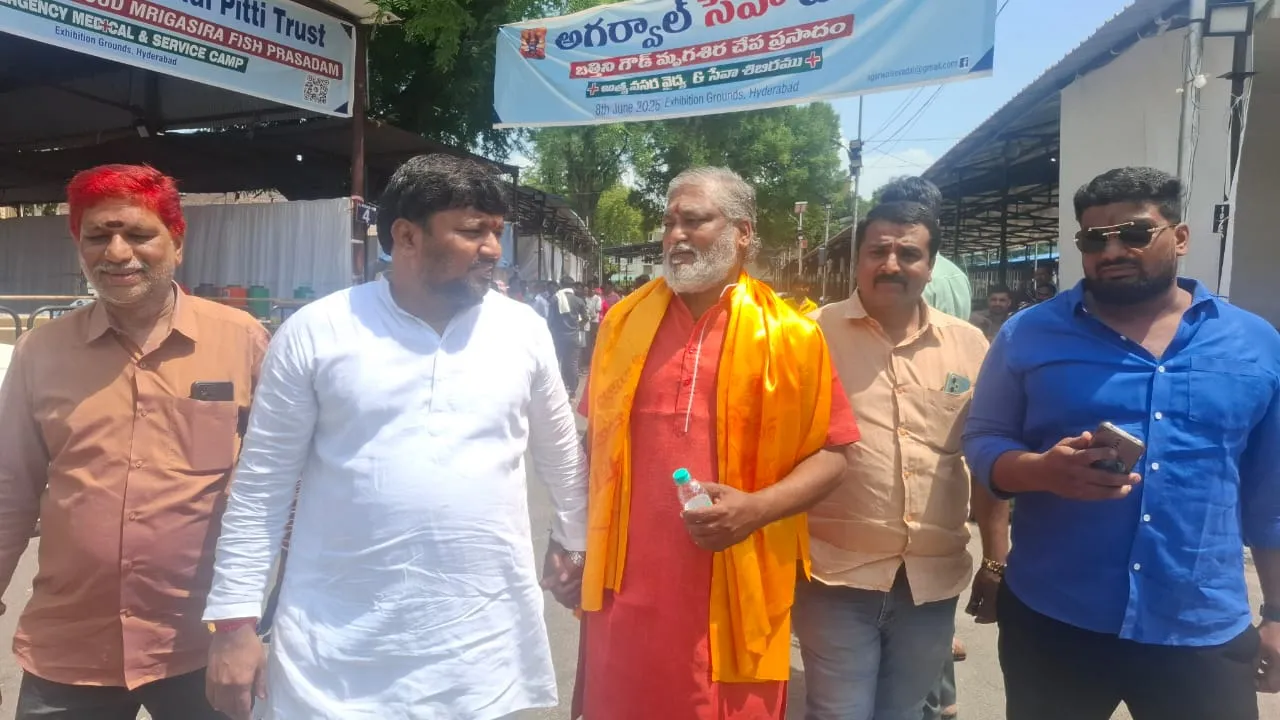 మృగశిర కార్తె సందర్భంగా బత్తిన సోదరులు పంపిణీ చేసే చేప ప్రసాదం పంపిణికి నాంపల్లి ఎగ్జిబిషన్ గ్రౌండ్ లో ఏర్పాట్లు పూర్తయ్యాయి. ఆదివారం ఉదయం 11 గంటల స్పీకర్ గడ్డం ప్రసాద్ కుమార్ ముఖ్య అతిథిగా హాజరు కానున్నారని, అలాగే పీసీసీ అధ్యక్షులు మహేష్ కుమార్ గౌడ్, మంత్రులు శ్రీధర్ బాబు, పొన్నం ప్రభాకర్ తో పాటు, ఎమ్మెల్యే లు, ఎమ్మెల్సీ లు పాల్గొంటారని తెలిపారు..jpeg)