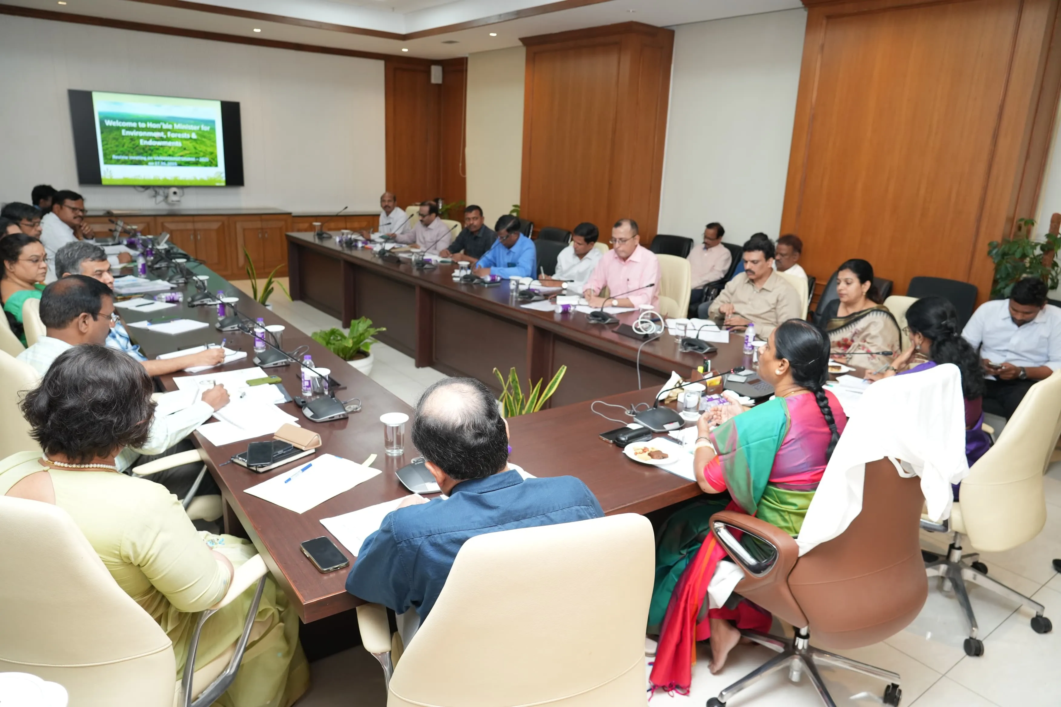 అటవీ, ఇతర శాఖ అధికారుల ఆధ్వర్యంలో జూన్ మొదటి వారం నుండి పెద్ద ఎత్తున మొక్కలు నాటాలన్న లక్ష్యంతో అధికారులు సిద్ధం చేసిన పీపీటీనీ మంత్రి సురేఖకి వీక్షించారు. అనంతరం సమావేశంలో మంత్రి మాట్లాడుతూ... గత ఏడాది అనుభవాల ఆధారంగా మరింత పక్కాగా ఏర్పాట్లు చేయాలని అధికారులను మంత్రి ఆదేశించారు. రాష్ట్రవ్యాప్తంగా అటవీ విస్తీర్ణాన్ని పెంచేందుకు వన మహోత్సవం కింద పకడ్బందీ కార్యచరణ రూపొందించాలన్నారు. రాష్ట్రవ్యాప్తంగా అన్ని జిల్లాల్లో.... అన్ని మండలాలు, గ్రామాలు, మున్సిపాలిటీల్లో పెద్దఎత్తున మొక్కలు నాటేందుకు సన్నద్ధం అవ్వాలని మంత్రి సురేఖ ఆదేశించారు..jpeg)