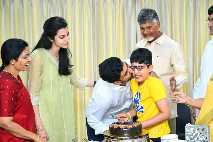 చంద్రబాబు ఇంట సంబురాలు.. కేక్ కట్ చేసిన మనవడు